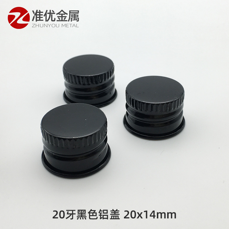 【準優】20mm黒色アルミカバー円形ねじ巻きエッセンシャルオイルボトル金属小蓋20/14