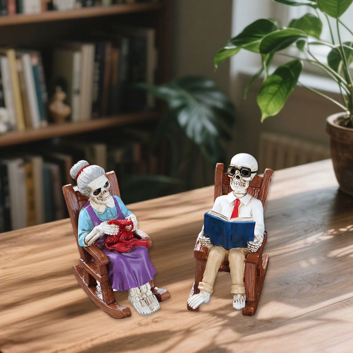 国境を越えた新商品 ハロウィン飾り 樹脂製置物 読書をする老人 ロッキングチェア スカル 屋外 庭 花瓶飾り