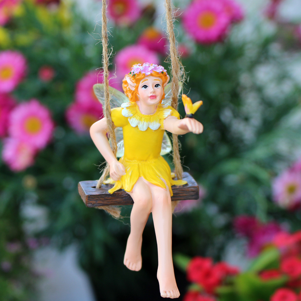 スポットブランコ花仙子樹脂置物創意微景観植木鉢装飾置物ベランダテラス植木鉢プラグイン