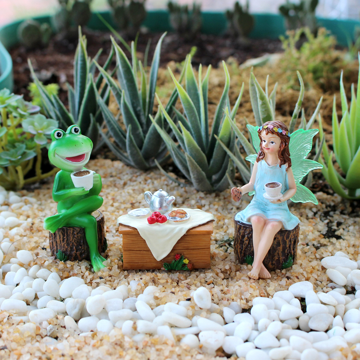 越境新商品お茶を飲む花仙子樹脂工芸品置物屋外別荘ベランダ多肉盆栽装飾置物