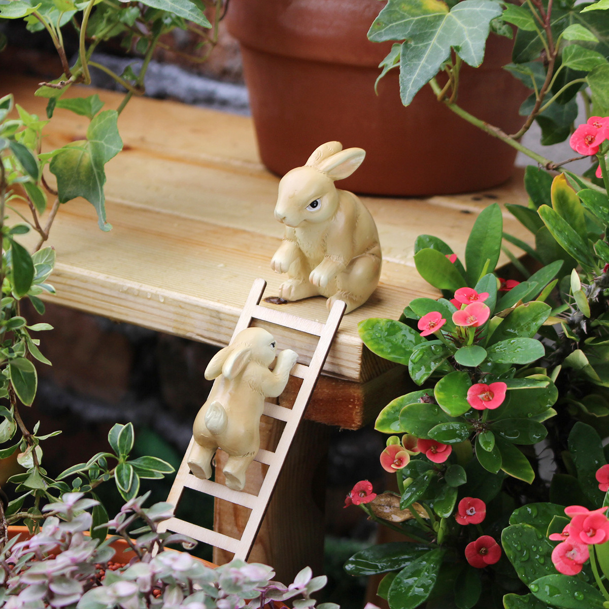 国境を越えた新製品樹脂ウサギがはしごを登るセット屋外庭園植木鉢家庭装飾装飾イースターウサギ