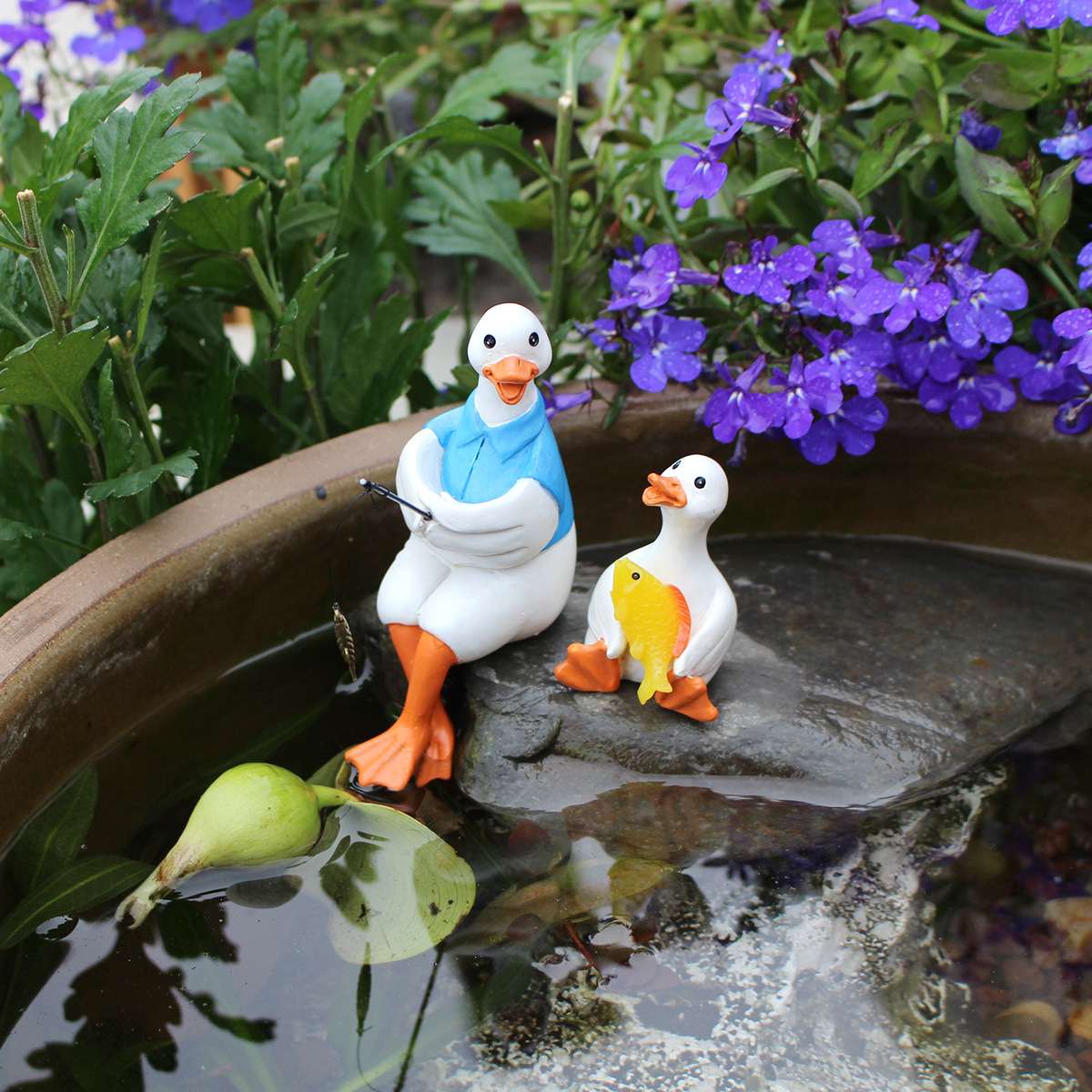 クロスボーダー爆型樹脂釣りアヒル親子セット二置物屋外庭園水槽植木鉢水西装飾置物