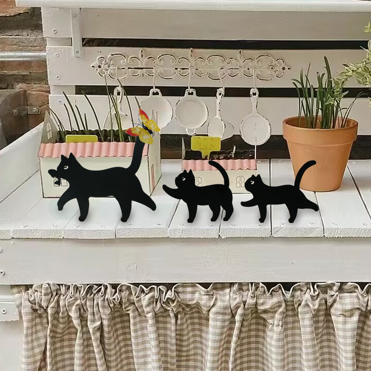 越境新品鉄件黒猫セット三屋外庭装飾雰囲気個性創意ホームデスクトップ庭装飾