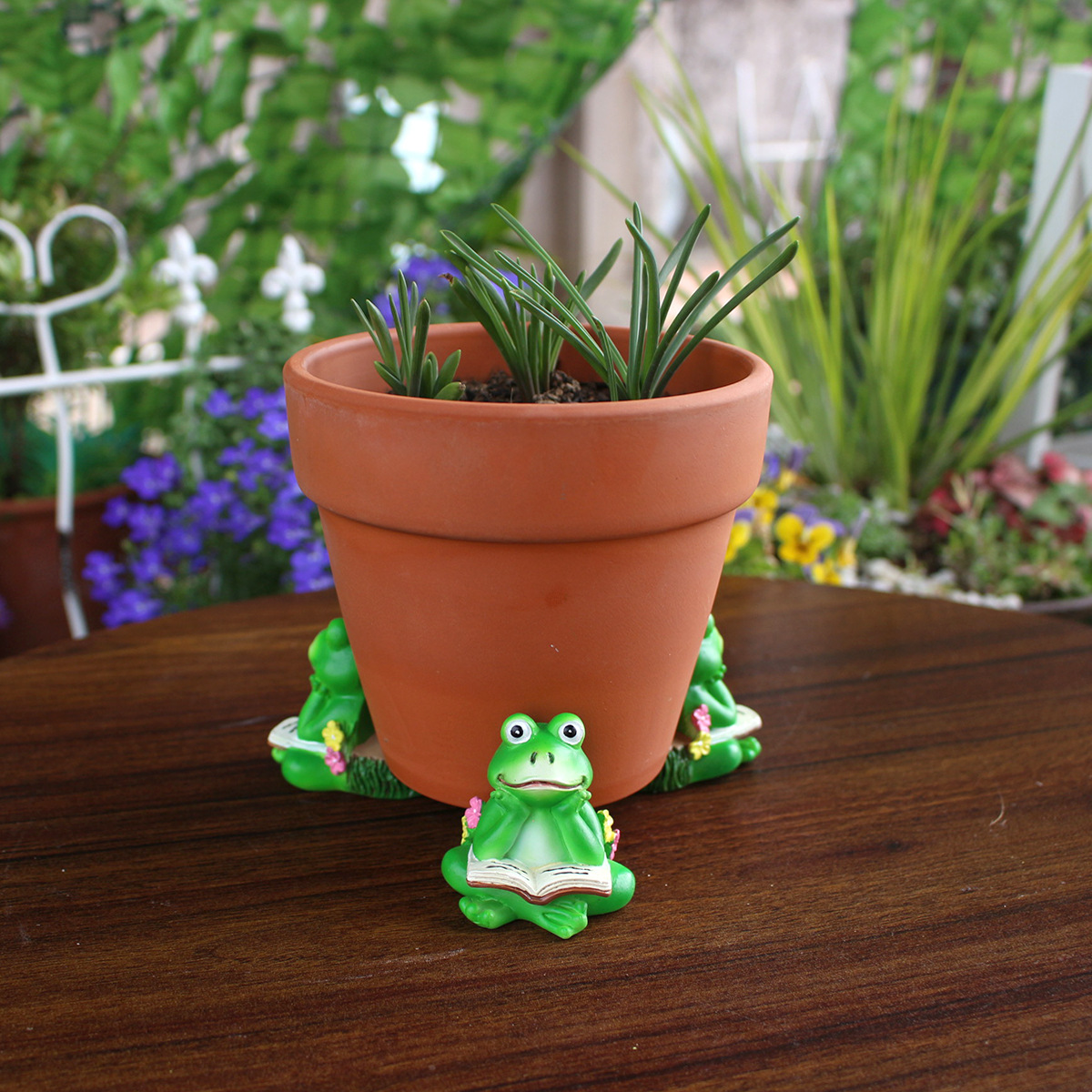 アマゾンの爆発的な本を読むカエルの植木鉢の足マットの個性的な創造性カエルの聖パリックの日の家庭庭園の装飾