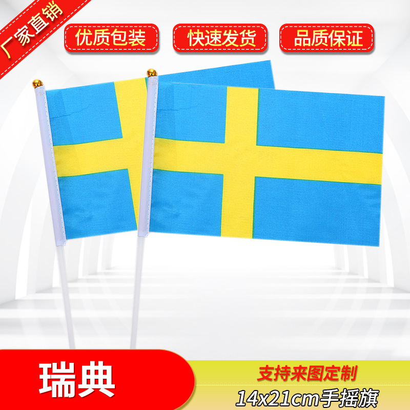 国境を越えた8号14*21スウェーデンの手で旗を振った赤旗を世界各国の小さな国旗卸売りに供給する
