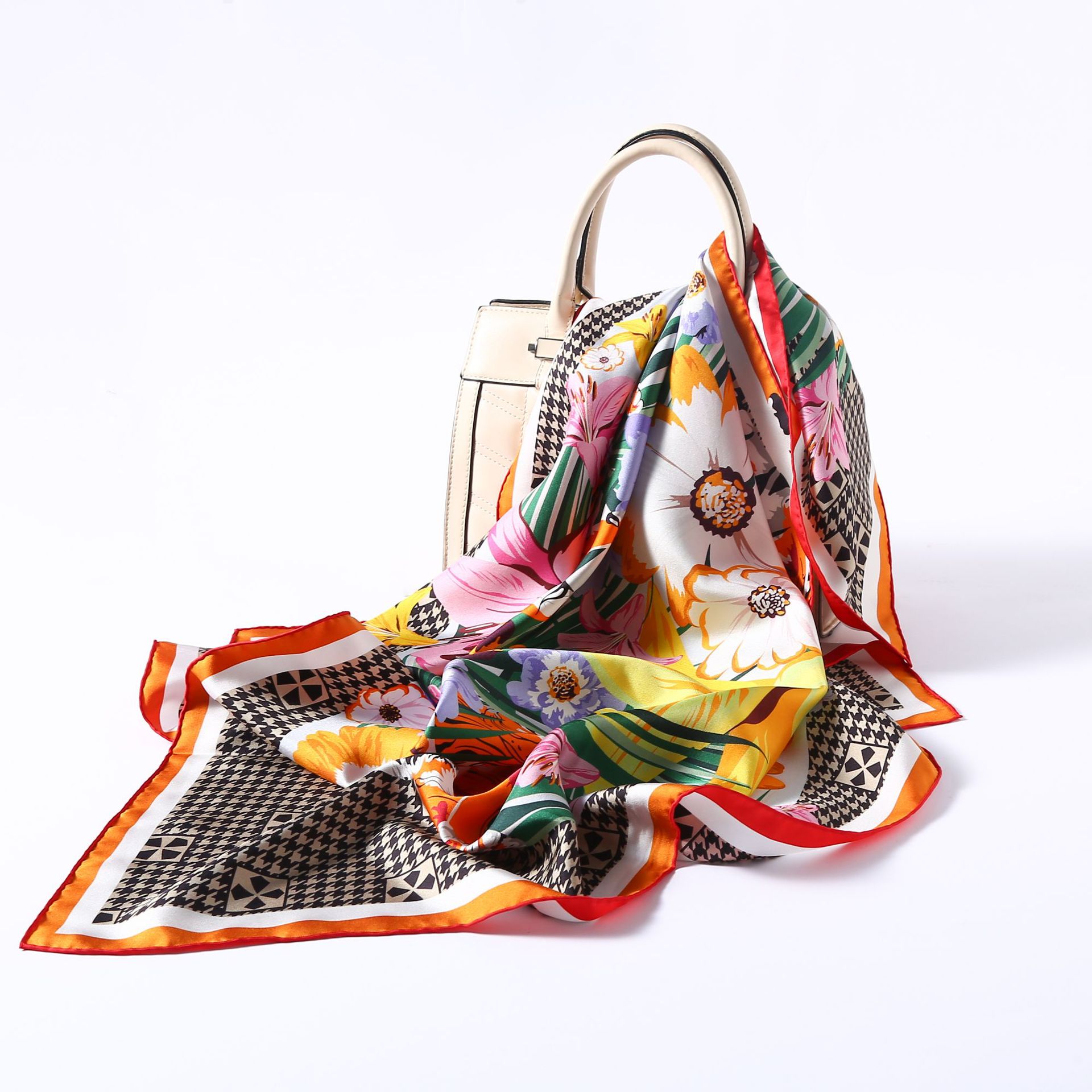 多機能美しい両面綾シルクスカーフ90角タオル100% 桑シルクギフト女性マフラーストール