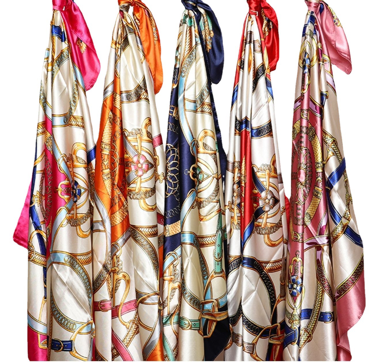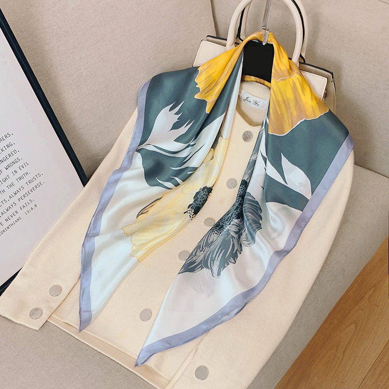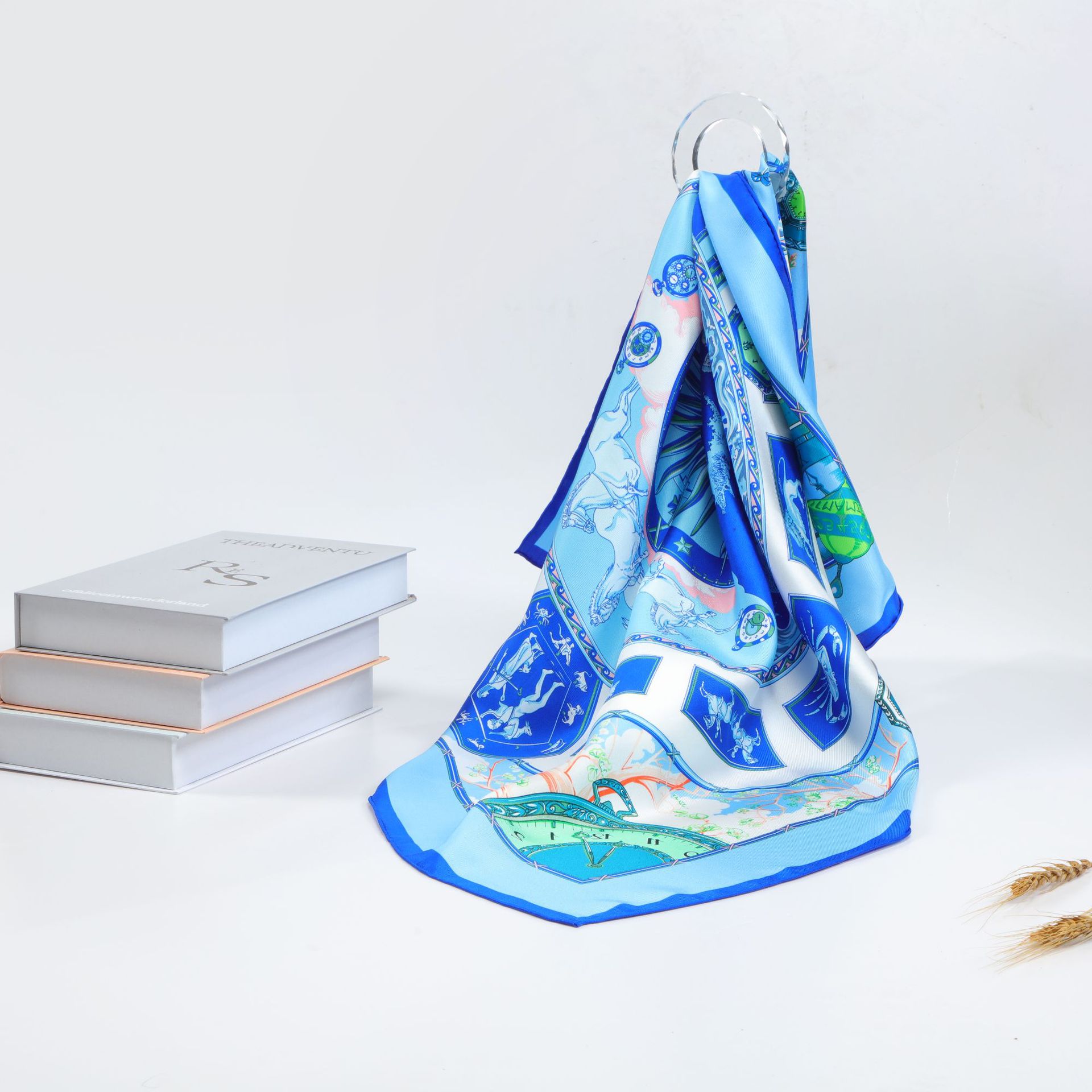 シルクタオル女2023年春夏模造シルクサテン大方巾90*90プリントマフラーマフラーマフラー卸売りカスタム