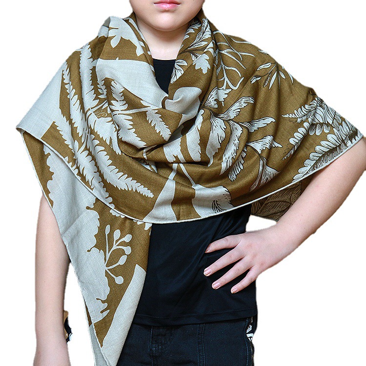 両面デジタルプリント30% シルク70% ウール混紡大方巾冬ウールマフラー女性大ストール