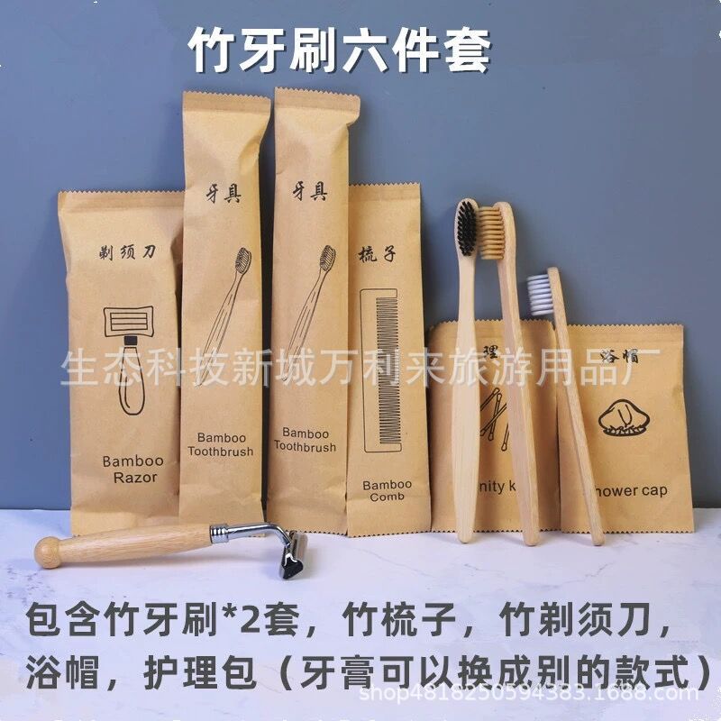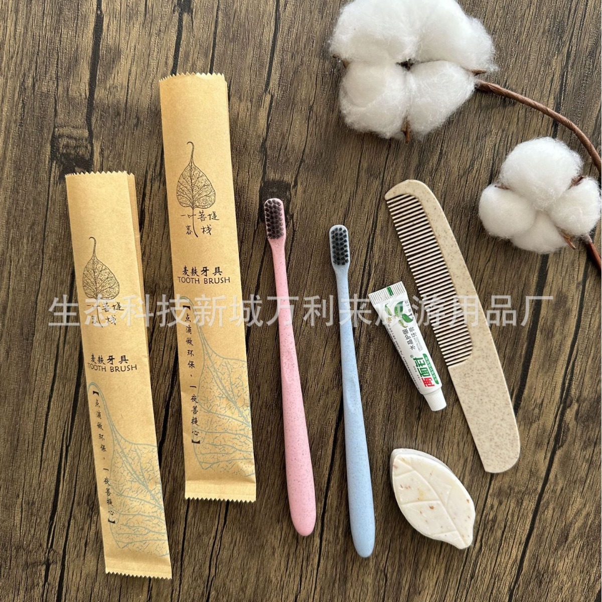 新商品民宿ホテルマンション使い捨てわら歯具櫛シャワーキャップスリッパ柔らかい毛歯ブラシスリッパセット