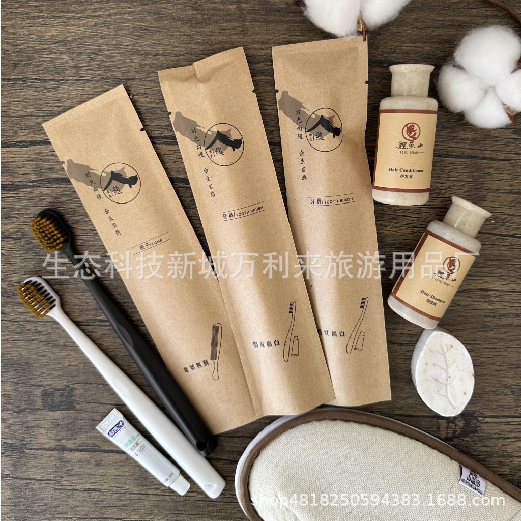 ホテルクラフト紙袋竹歯ブラシ非使い捨て竹柄竹歯ブラシ印刷可能ロゴ可