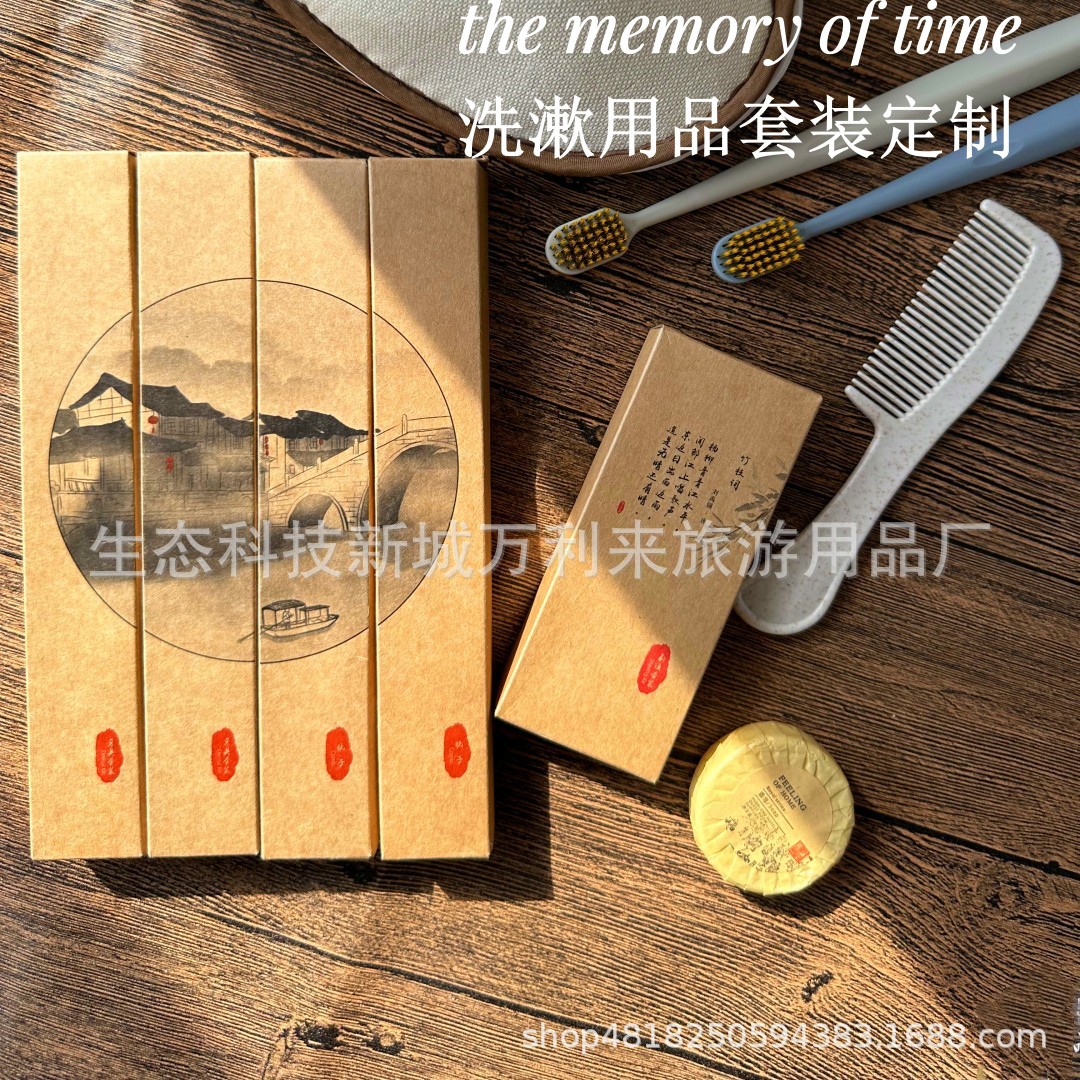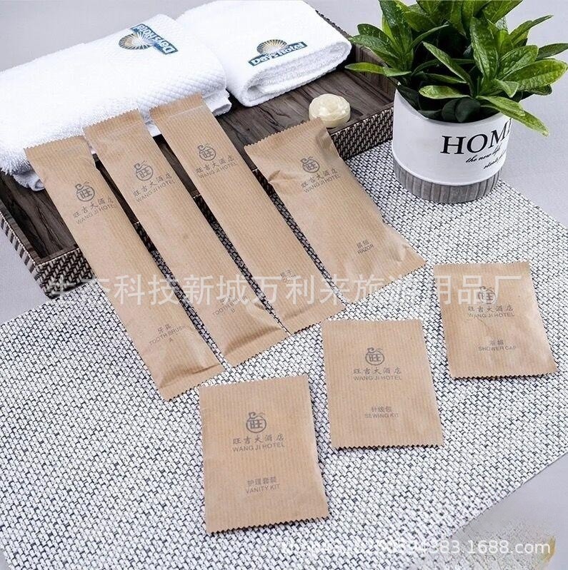 ホテル使い捨て入浴セットソフト毛jわら歯ブラシクラフト紙歯ブラシ歯磨き粉セット六合一印log