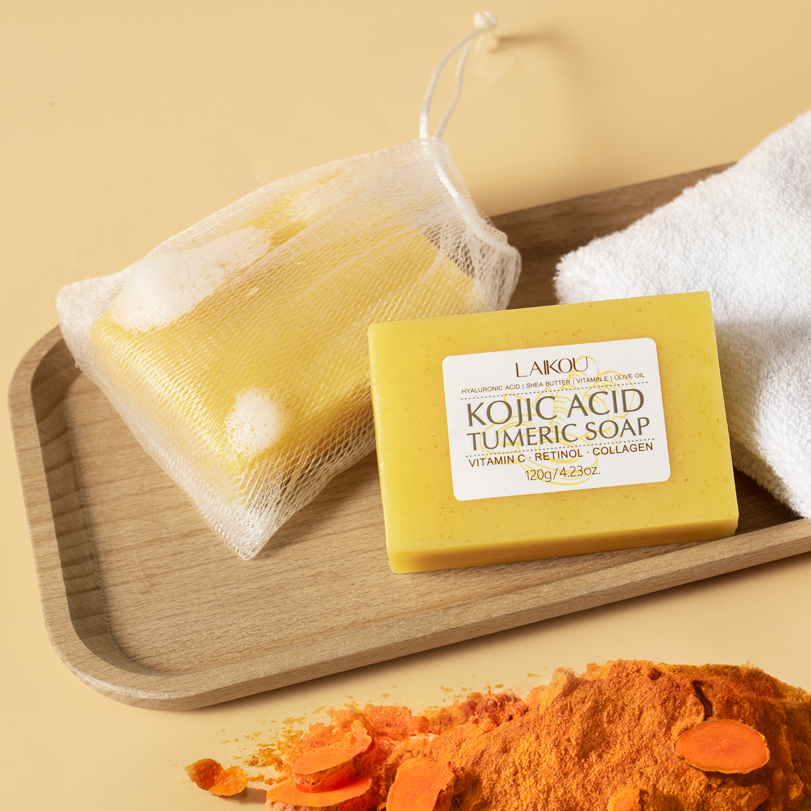 国境を越えた新製品LAIKOU曲酸ウコン石鹸120g清潔な顔の肌に美しい肌の色の洗顔石鹸卸売り