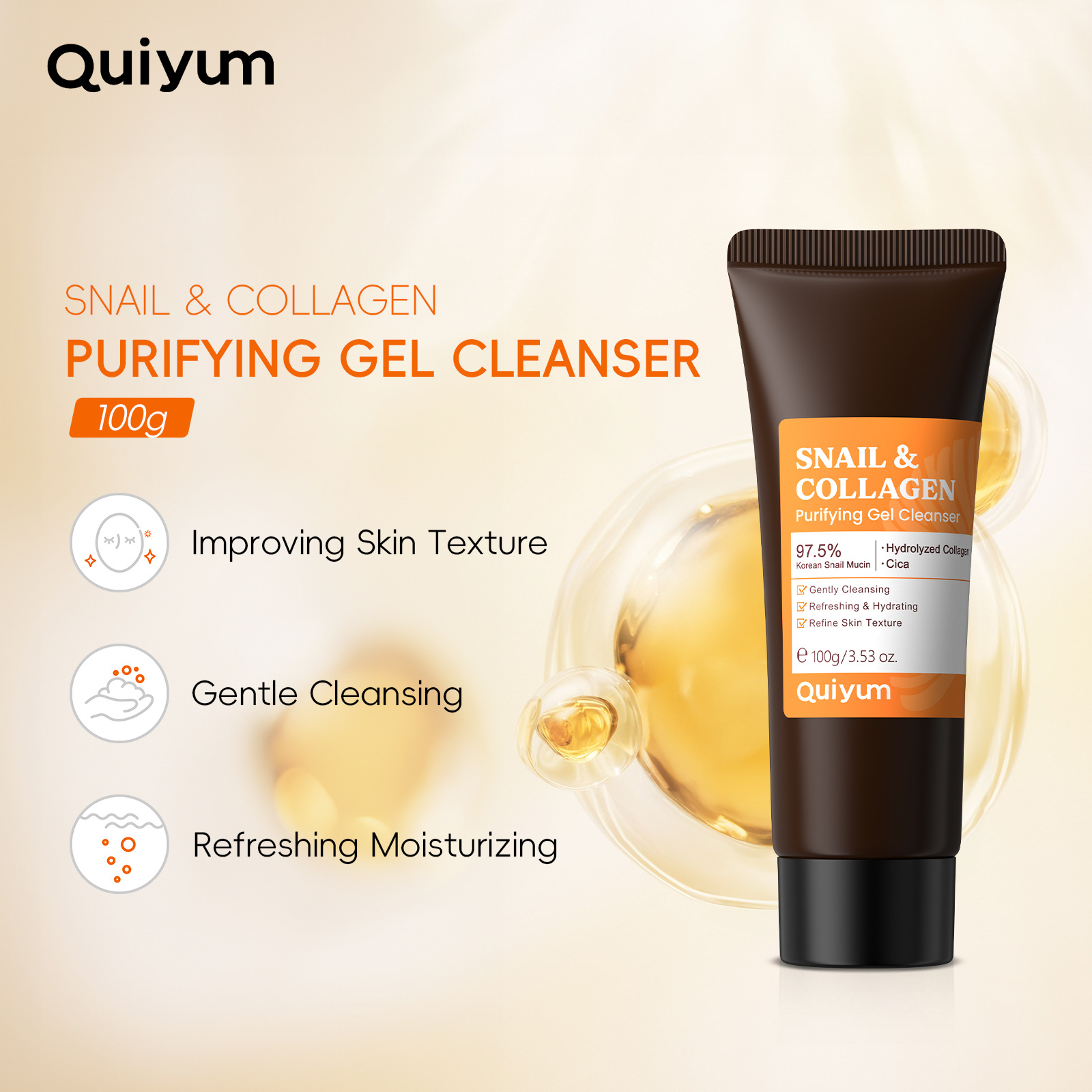 国境を越えた新製品QUIYUMカタツムリコラーゲン洗顔ジェル毛穴洗顔ミルク英語スポットメーカー卸売り