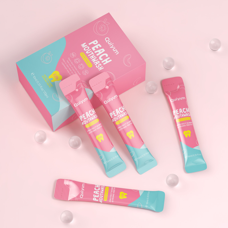 国境を越えた QUIYUM ピーチマウスウォッシュ 10ml*20 個口腔をきれいにし、息を爽やかにします工場在庫卸売