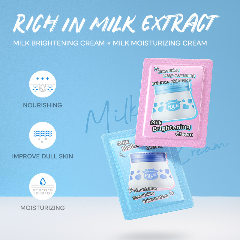 クロスボーダーLAIKOU牛乳保湿クリーム牛乳の柔らかいクリーム袋に1.5gを入れて潤いを与え、水を補給する保湿クリームを入れます。