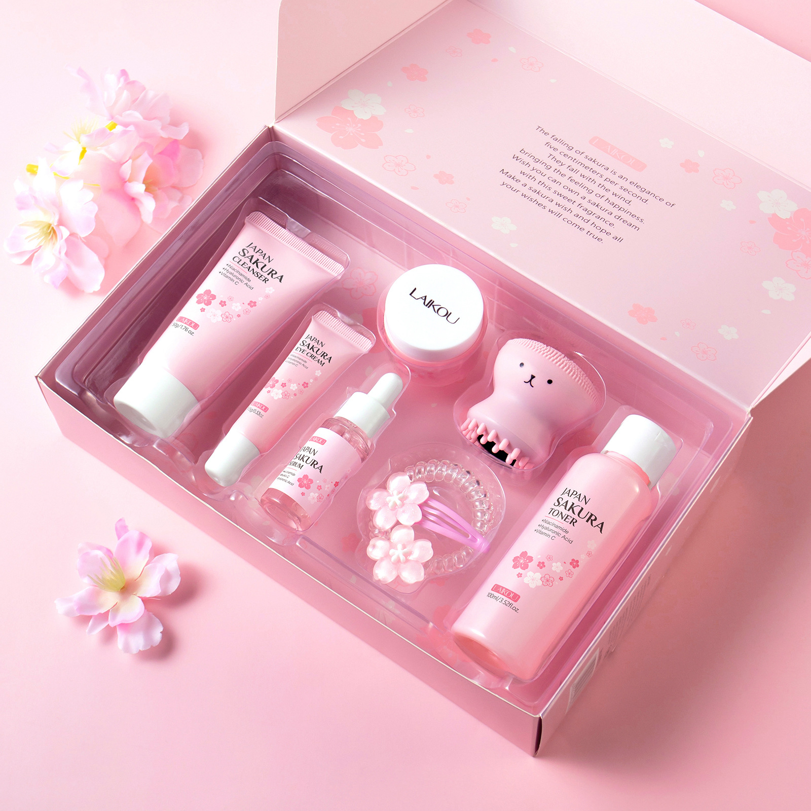 クロスボーダー新型LAIKOU桜8点セット誕生日プレゼント顔スキンケアボックスメーカーのスキンケア用品現物