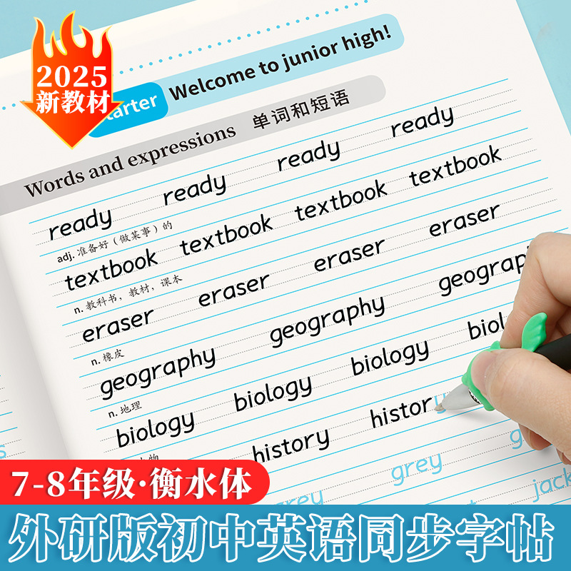 外研版の7年生の英語は赤い字を描きます。