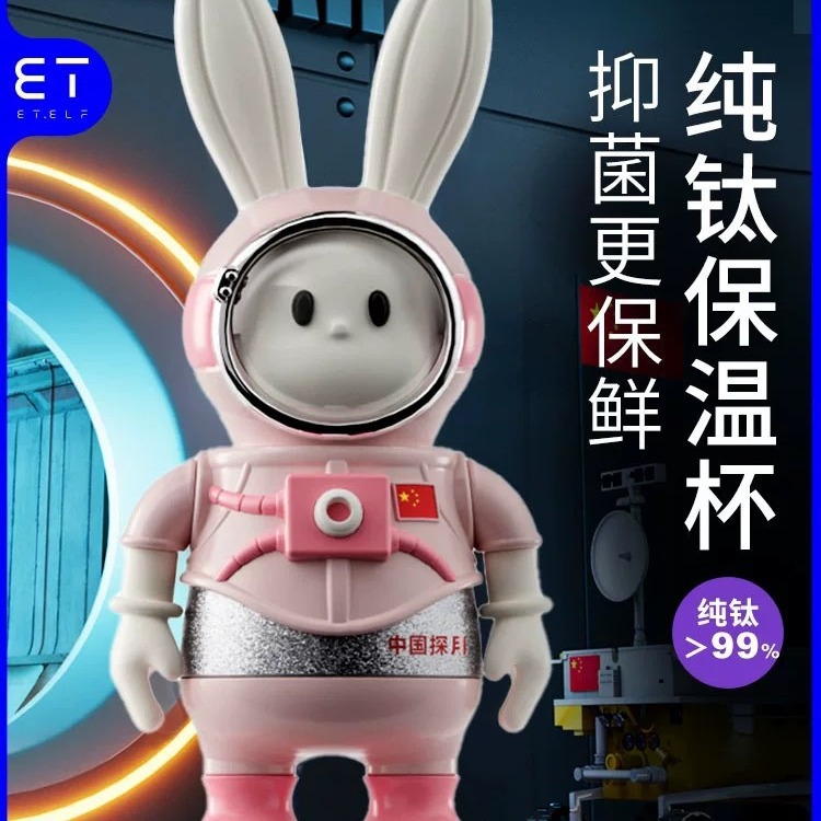 純チタン月探査ウサギ魔法瓶カップ高価値ポータブル子供用ケトルギフトボックス人形ウサギスターストローカップギフトボックス