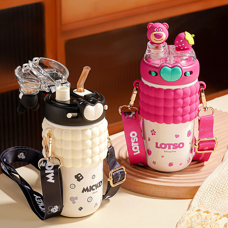 ストロベリーベアミッキーストローカップ女の子のための高価値ガールハートサマーカップ高温耐性学生かわいいカップ