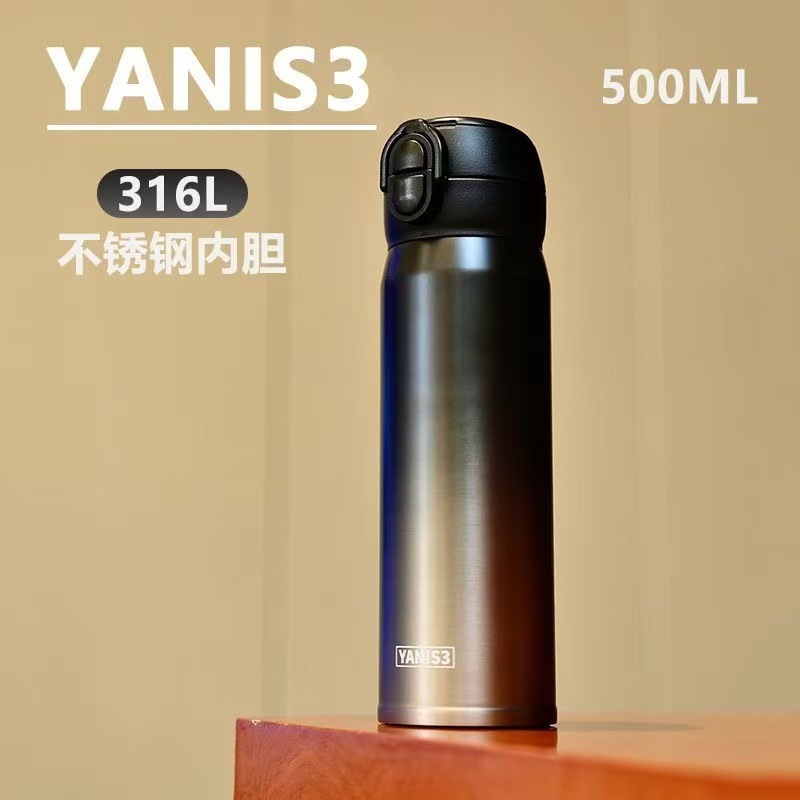 Y.3 バウンスダブルドリンク断熱カップ 316 ステンレス鋼シンプルなバウンス蓋ウォーターカップストロー直飲み兼用学生ポット