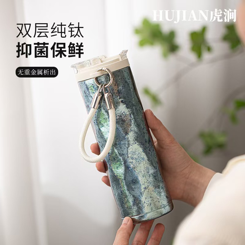 純チタン魔法瓶カップ、高級ストローカップ、高級車載用大容量ティーカップ、内外チタンカップ、アイスカップ