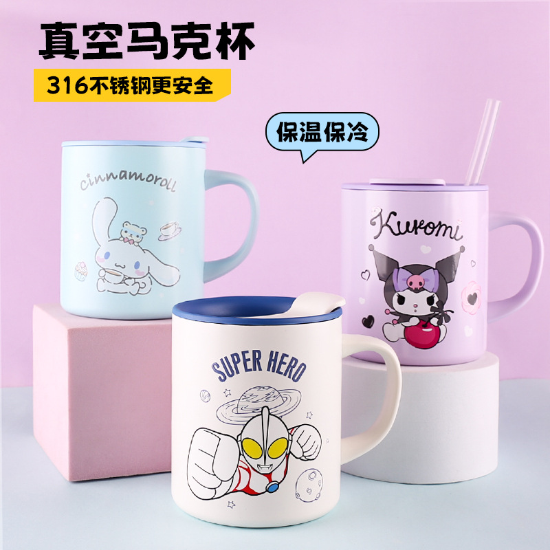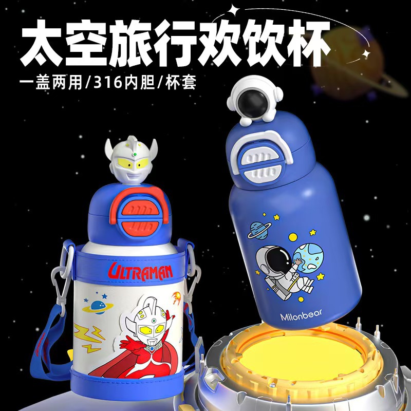 ウルトラマンストローカップ学生子供用魔法瓶カップ 316 ステンレス鋼ギフトボックスダブルドリンク PU レザーカップカバーストローカップ
