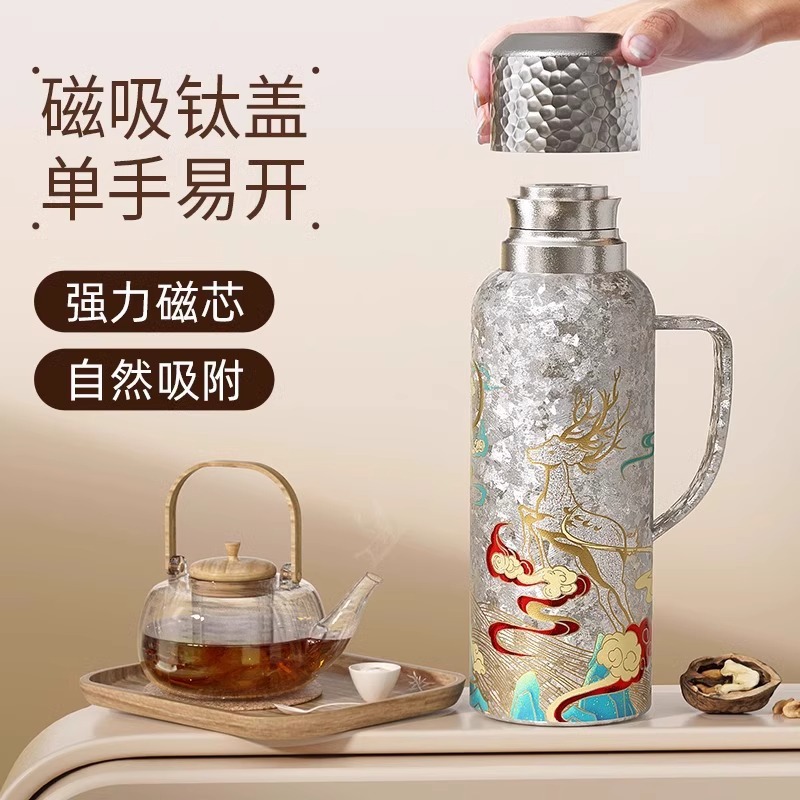 純チタン保温ポットビジネスオフィス高颜値磁気吸引機械内蓋泡茶保温瓶家庭用煮込み茶保温瓶