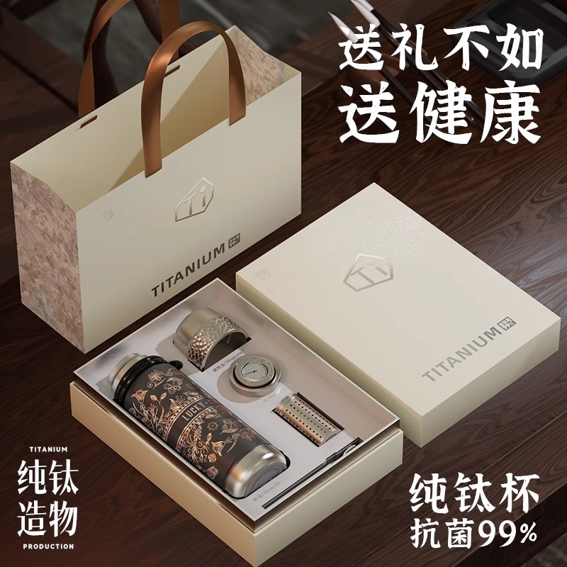 大卡純チタン保温ポットハンドル機械保温カップ温度計内蓋外蓋を外してお茶を飲むプレゼント