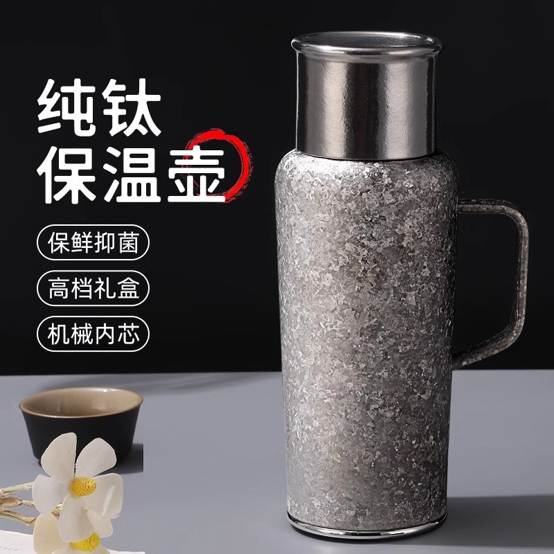 ハイエンドビジネス純チタン保温カップ二重保温ポット家庭用大容量ポット屋外旅行チタン蒸し器