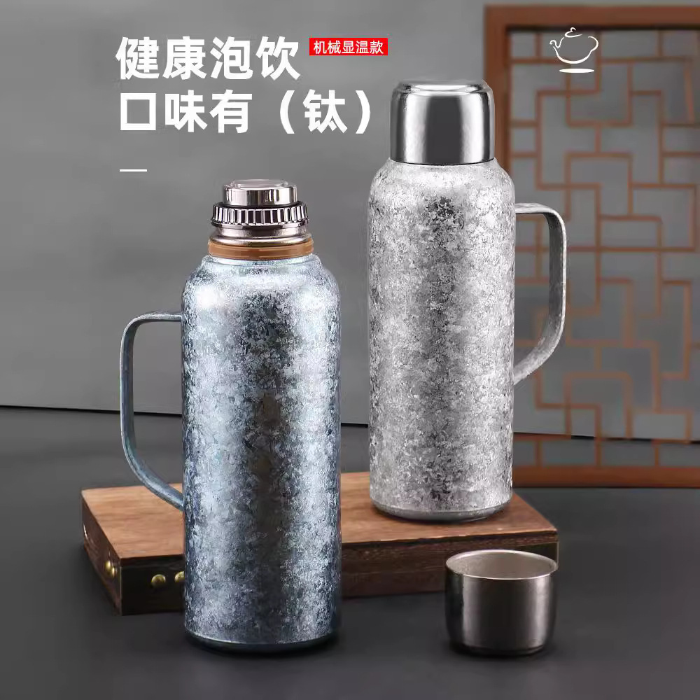 純チタン保温ポット純チタンハンドル機械温度計内蓋純チタンオフィス水筒家庭用保温水筒