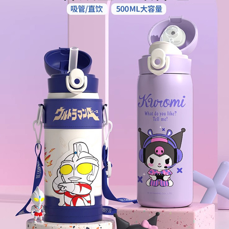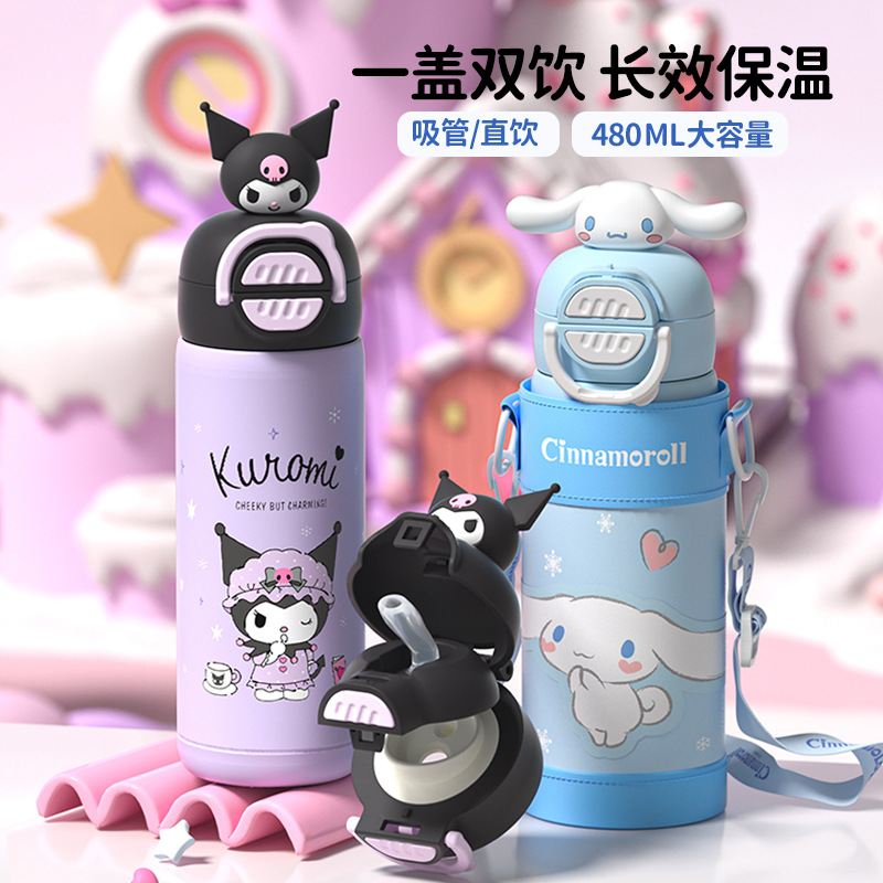 サンリオ子供保温カップ316ステンレスダブル蓋水筒小学生通学専用ストローストレート水筒