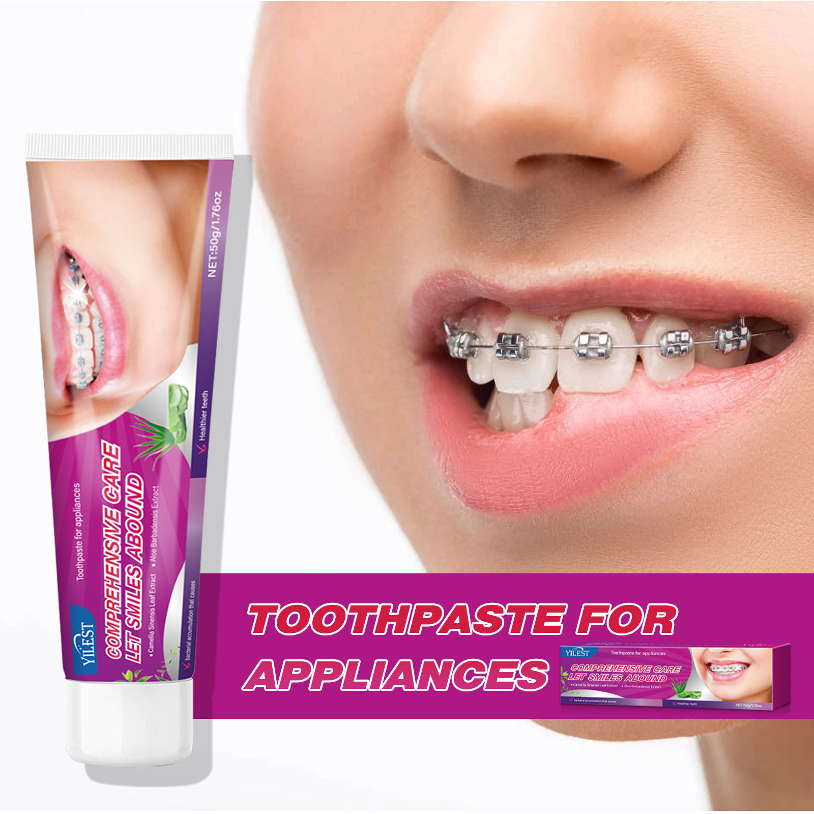 国境を越えた新製品、ディープホワイトニング、ブライトニング、黄ばみ除去、口臭除去、歯石除去、ライラックホワイトニング歯、ミント歯磨き粉50g