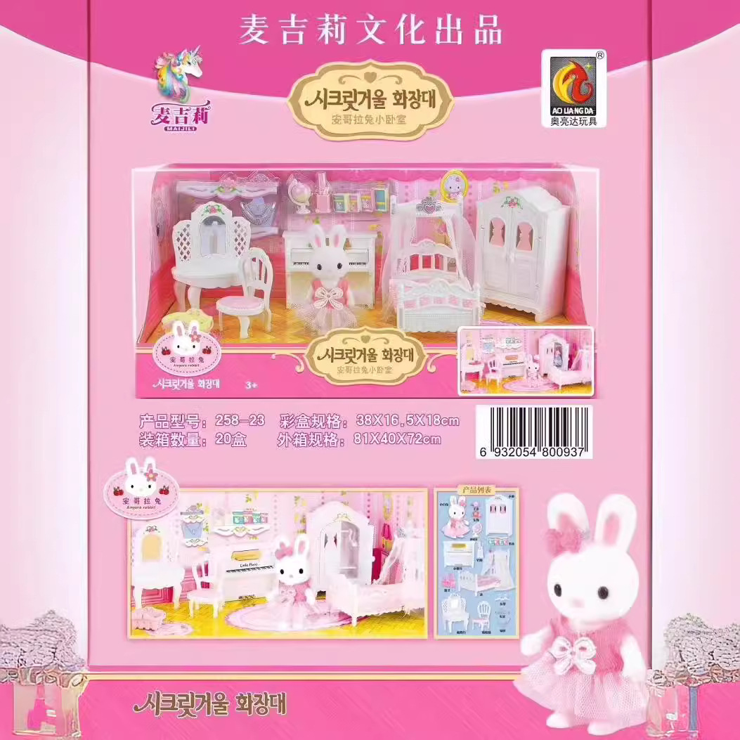 正規版の麦吉莉のままごとの公仔の子供のセットのミニの小さい浴室のミニの客間の子供はウサギを引っ張ります。