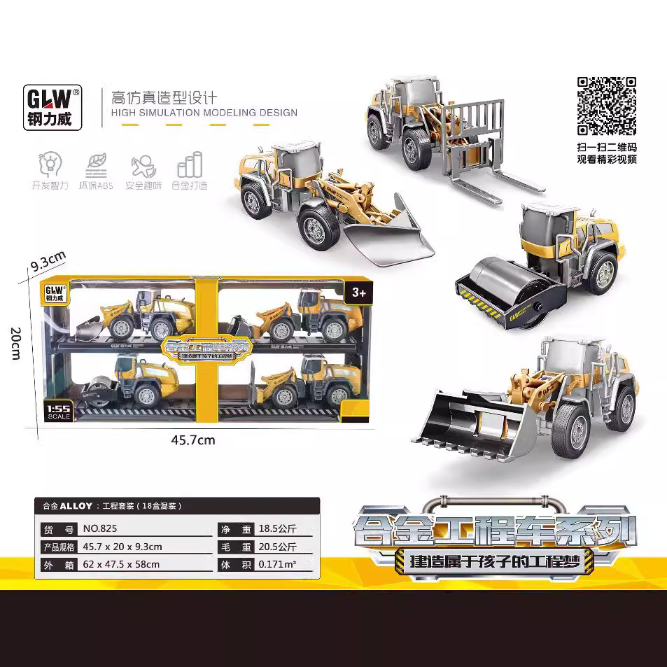 鋼力威シミュレーション合金ショベル消防車ギフトボックスセット男の子女の子合金工事車シミュレーションモデル