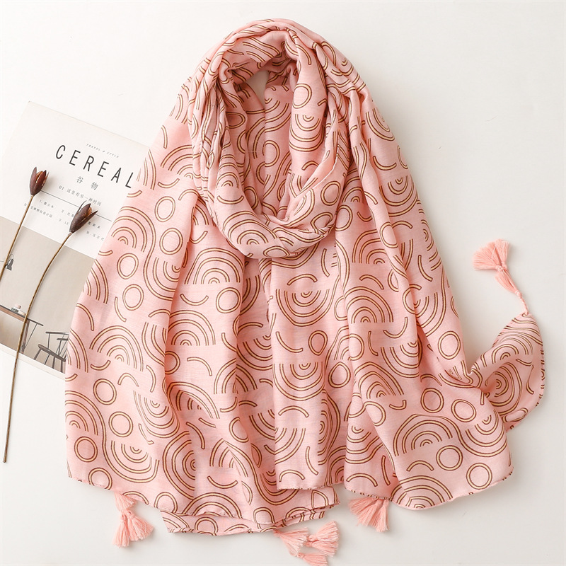 外国貿易の輸出は簡単で民族風の綿麻の手触りのマフラーの欧米のファッションのオレンジの粉の輪のフリンジの装飾のショールの女性です。