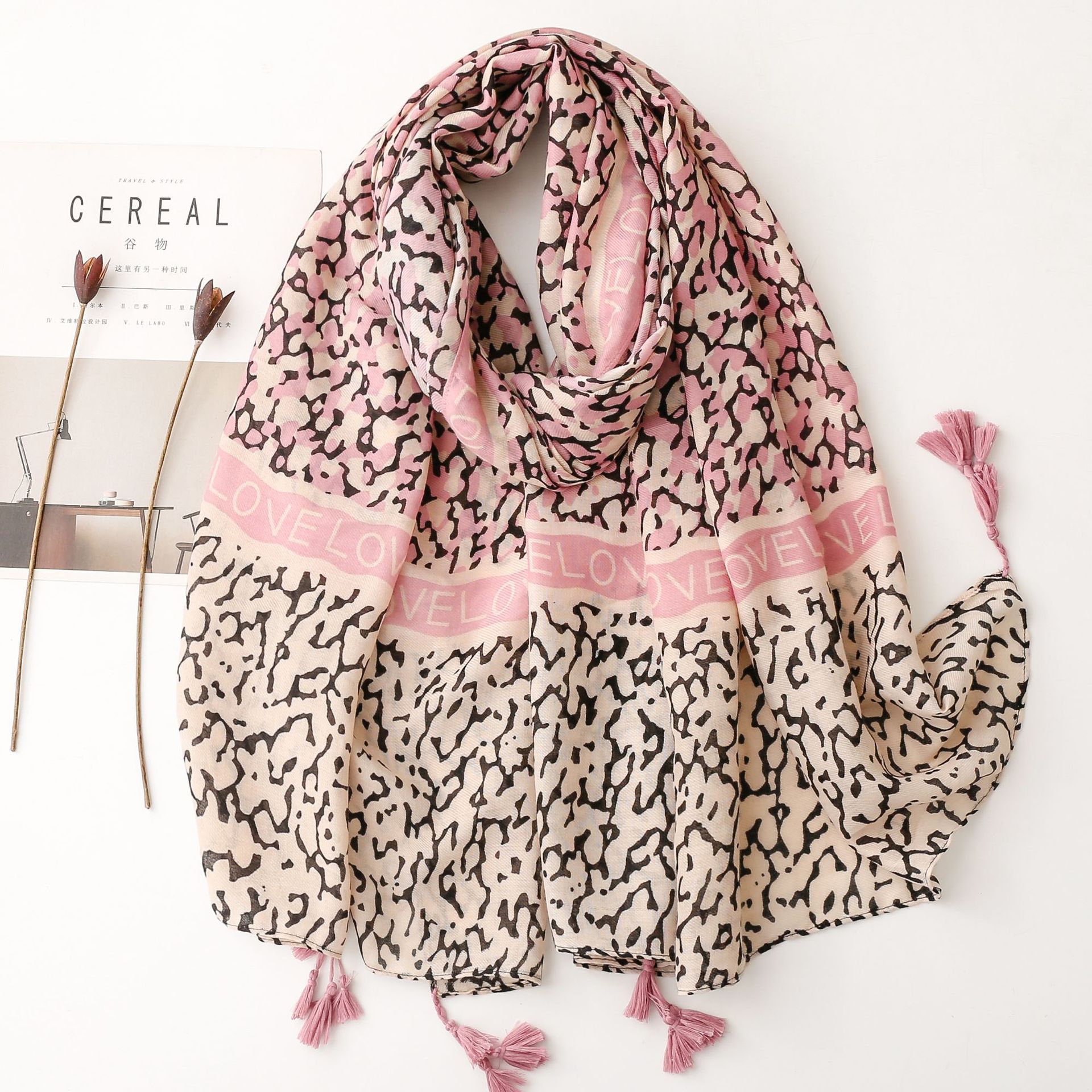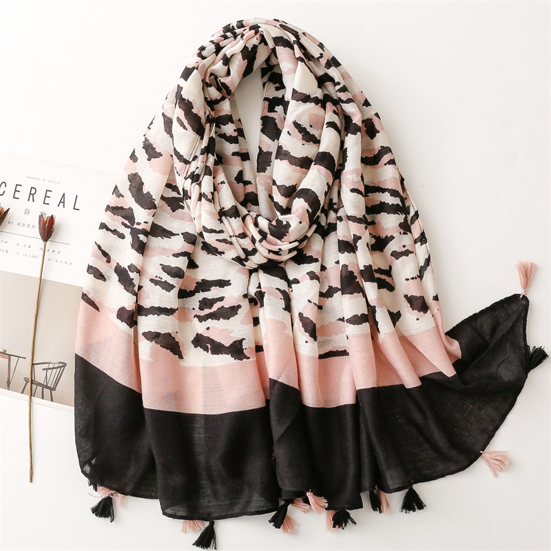 クロスボーダーのマフラーの綿麻のマフラーのシルクの女性の個性の豹の紋様の欧米のファッションはストールのフリンジストールを掛けます。