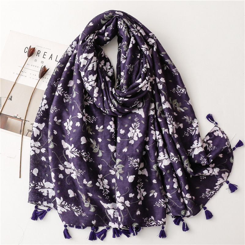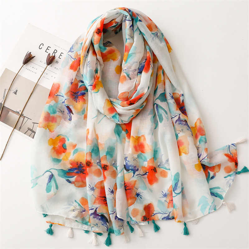 逸淘対外貿易輸出フランス綿麻手触りマフラー名媛風枠茶花柔らかい流蘇シルクタオルストール女