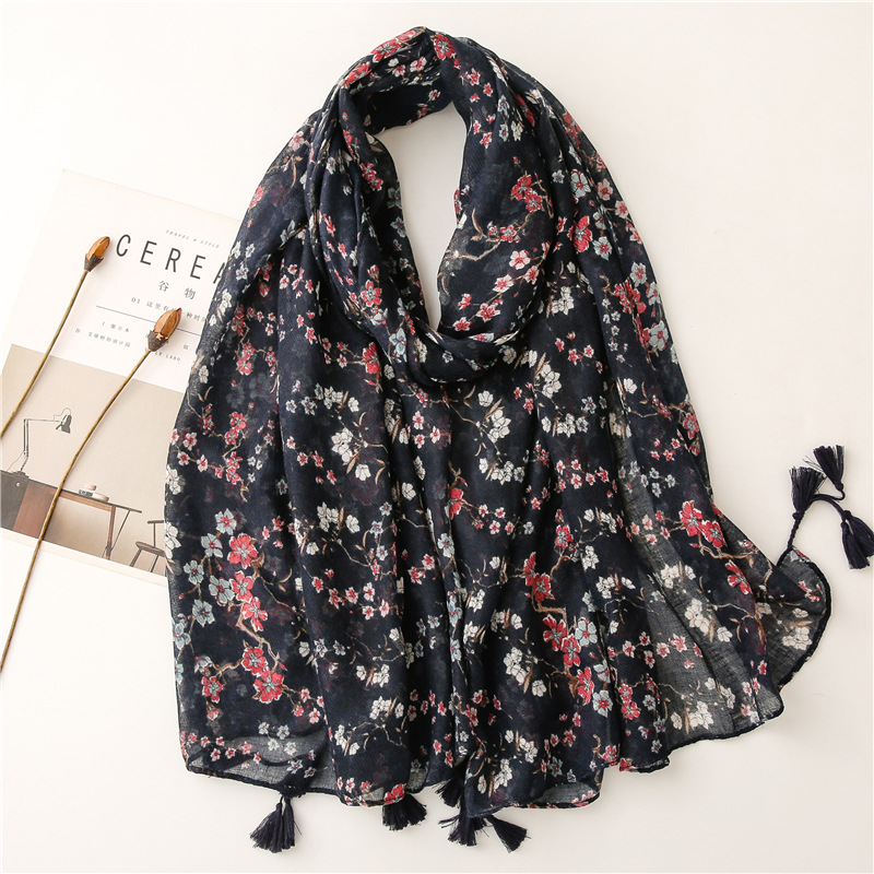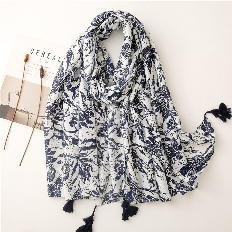 日韓ファッション綿麻マフラー春秋外にチベット青花磁器流蘇シルクタオルの長い保温ストールが薄い