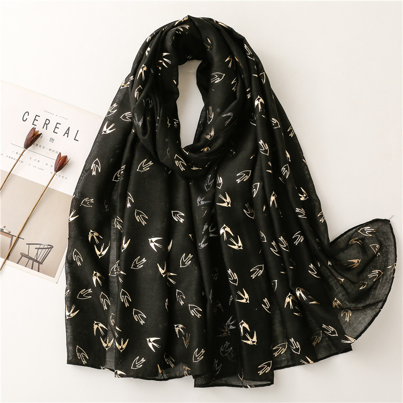 小清新暖かい風バリ糸綿麻手触りマフラー女性箔押しツバメ多色巻きの薄手のガーゼマント