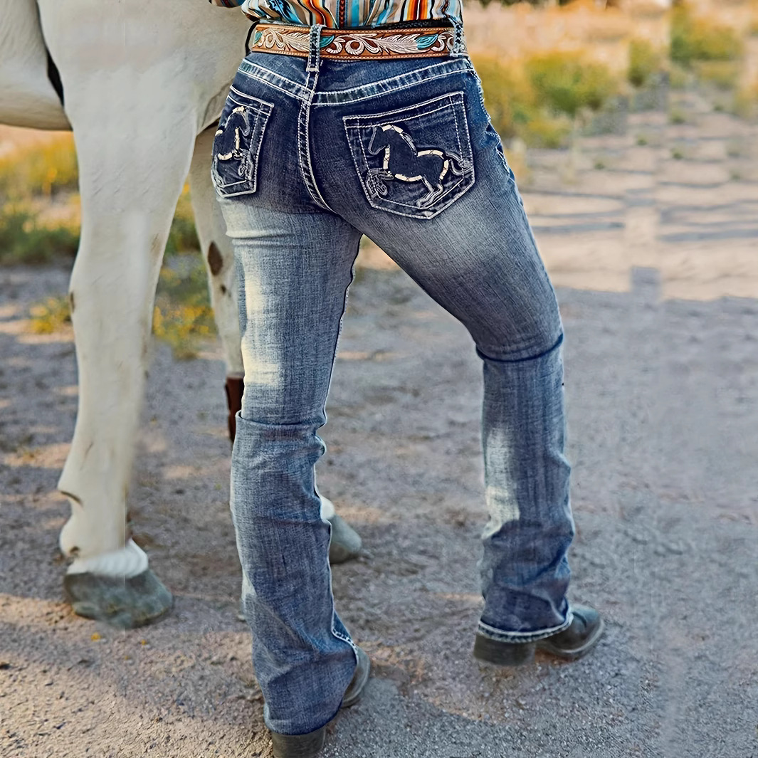 スポット欧米クロスボーダー速売通レディースジーンズ水洗い大ポケットゆるいレディースデニム長ズボン
