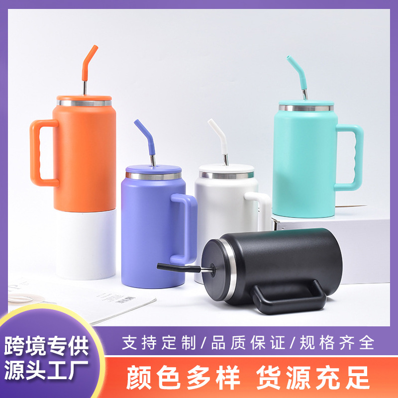 クロスボーダー 40 オンスカーカップ真空二重層アイスカップステンレス鋼カーハンドルストローカップカスタムメーカー卸売