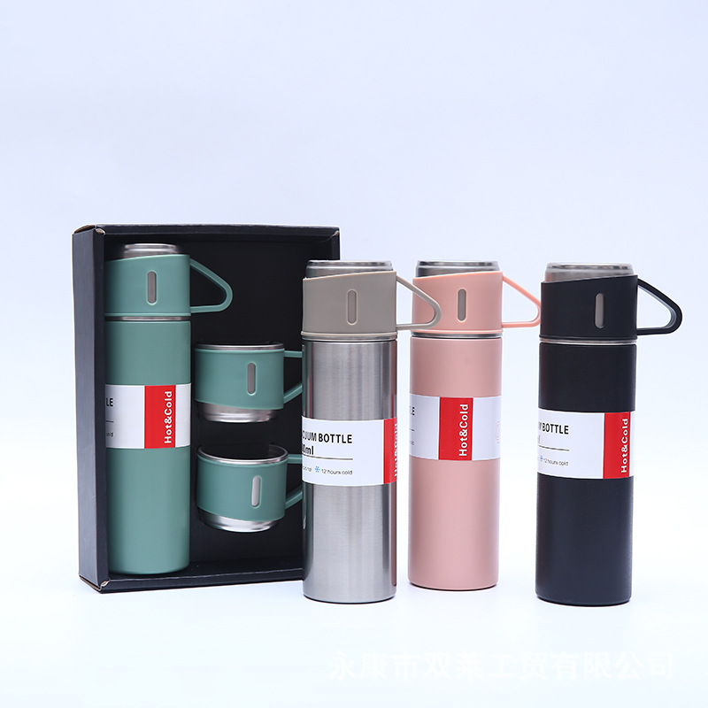 定制直供一杯三盖保温杯套装茶水分离全钢盖泡茶水杯真空直身杯