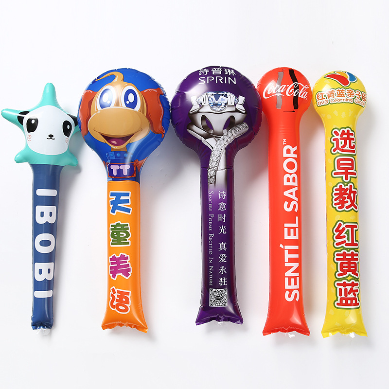 メーカーはインフレータブル応援棒を販売しています。カラー広告のロゴを印刷してプレゼントを広めることができます。