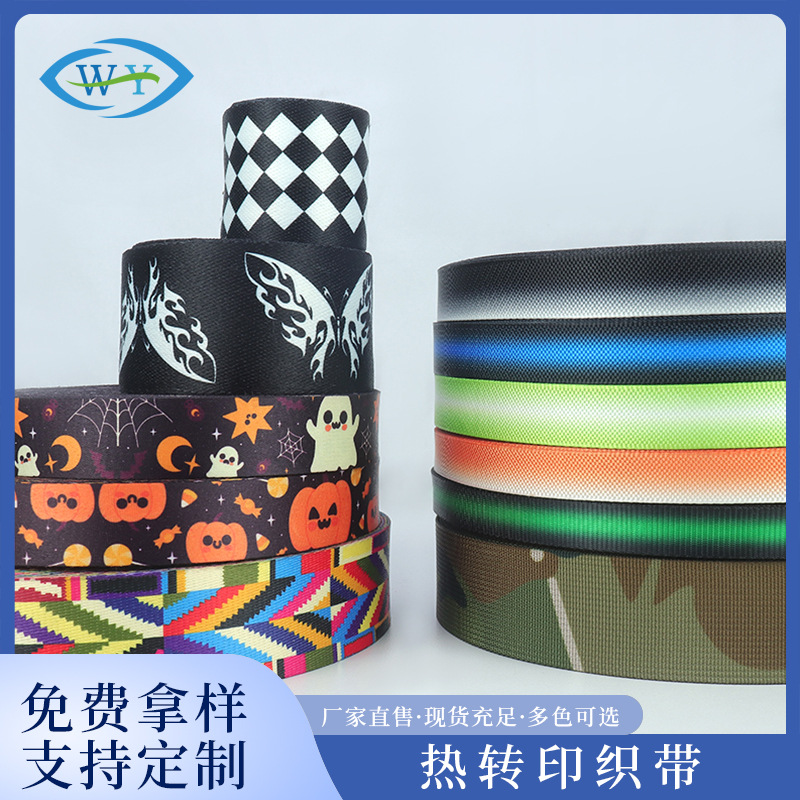 メーカー卸売ウェビングギフトストラップDIY装飾ロゴカラープリントジャカードウェアストラップポリエステルリボン