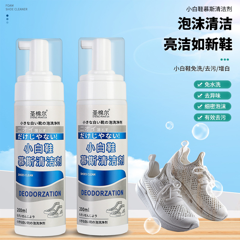 白い靴ムースクリーナー、ポータブル無洗スポーツシューズクリーナー、スニーカー除染・黄ばみ除去フォームドライクリーニング剤