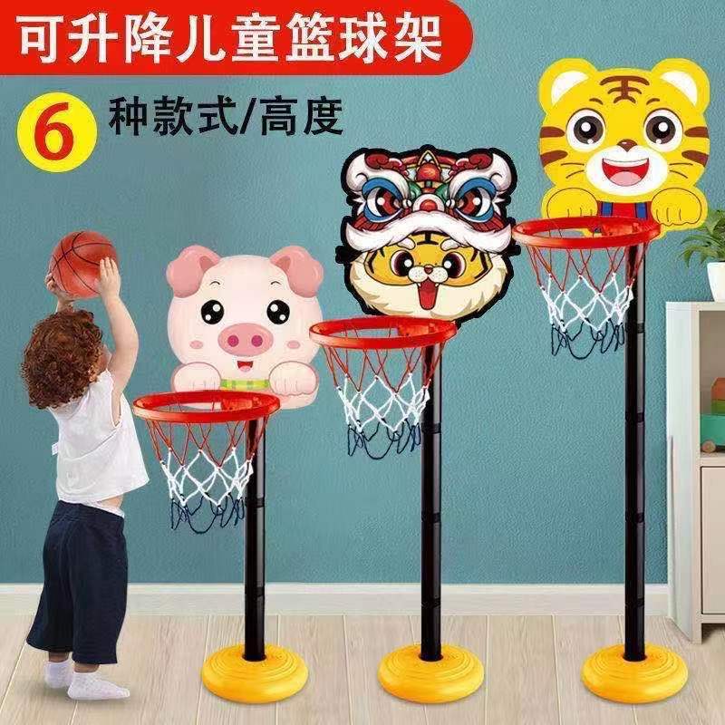 子供のバスケットボールのバスケットは室内外の漫画の縦型のシュートの枠の赤ちゃんのボールの種類の運動のおもちゃの男の子を昇降することができます。