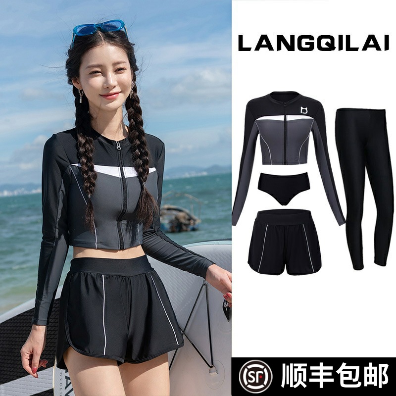 女性用ウェットスーツ スプリットボクサー スリム 長袖 クラゲ サーフィンスーツ 保守的な学生 スポーツ 日焼け止め 温泉水着