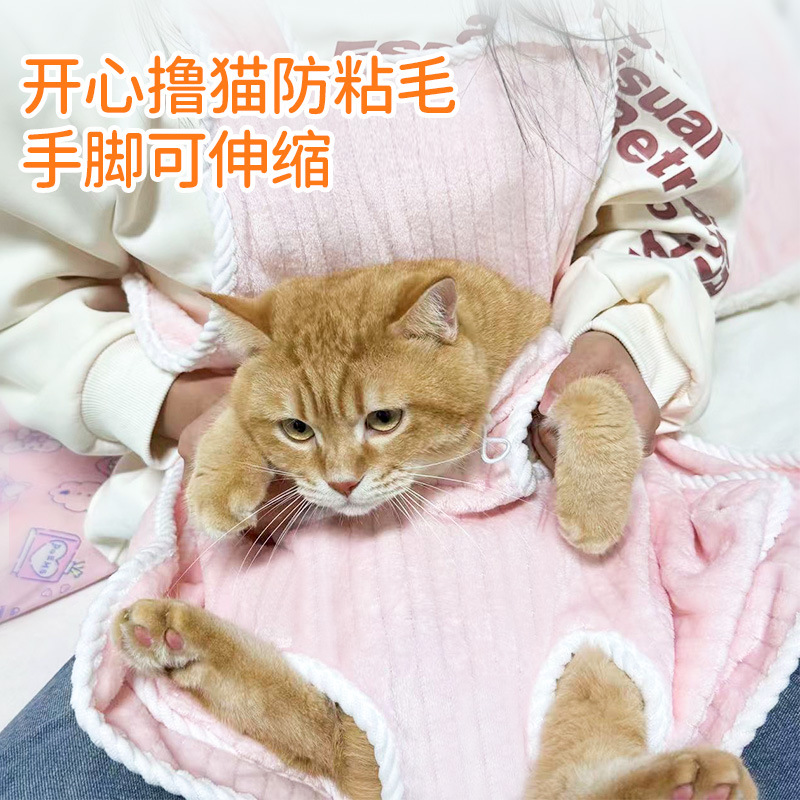 エプロンペットは猫のエプロンをします。猫は猫を抱いて服を着ます。