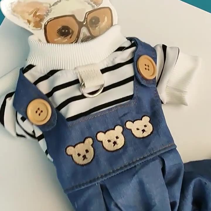 ペット比熊雪納瑞テディ犬服秋装春夏服デニム四足服牽引ロープ牽引リング