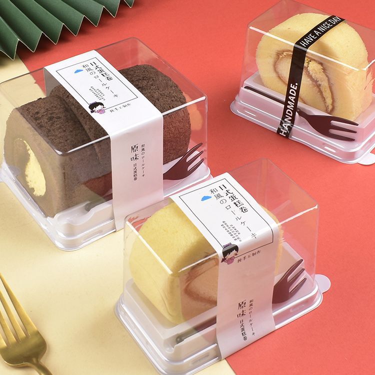網紅日式ケーキ巻き包装箱夢龍スイス虎皮巻き女王透明小西点カットケーキ箱